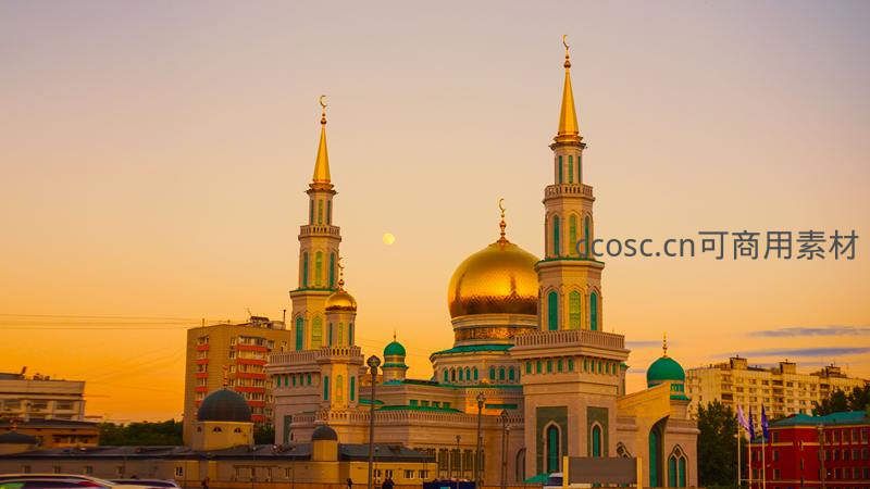 夕阳余晖金顶清真寺