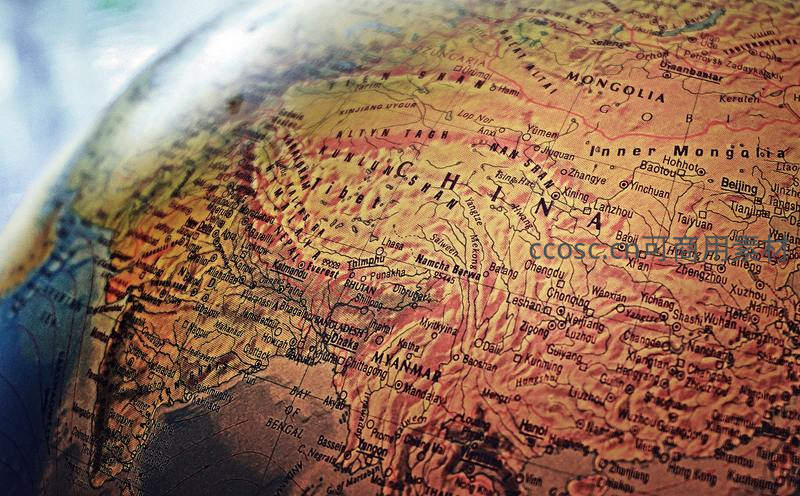 地球仪特写聚焦亚洲大陆,展现地理人文细节
