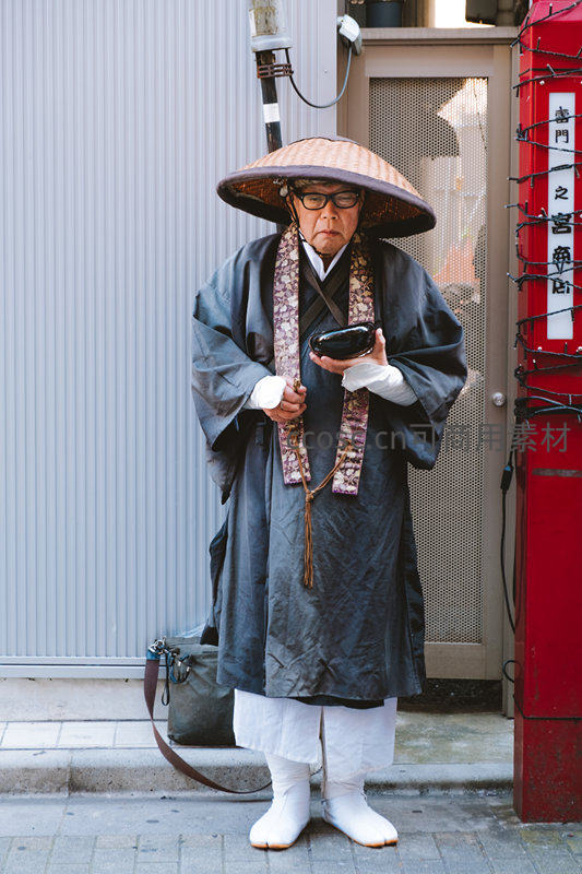 身着传统服饰的日本僧人街拍