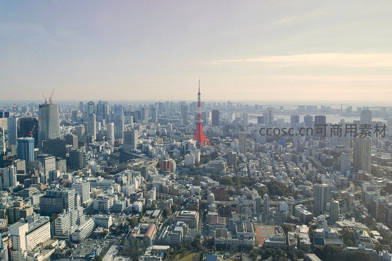 东京塔俯瞰下的现代都市全景
