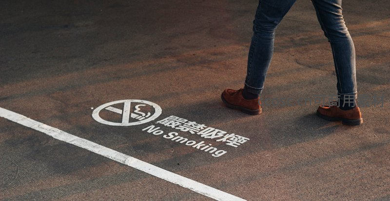 脚边禁烟标识,城市文明行为无声提醒