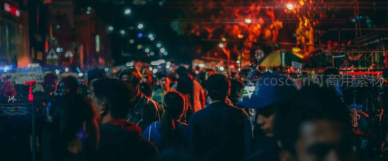 夜晚的露天市场人头攒动,五彩斑斓的灯光与模糊的人影交织,充满了喧闹与活力,是体验当地文化与美食的绝佳场所,洋溢着浓厚的生活气息。