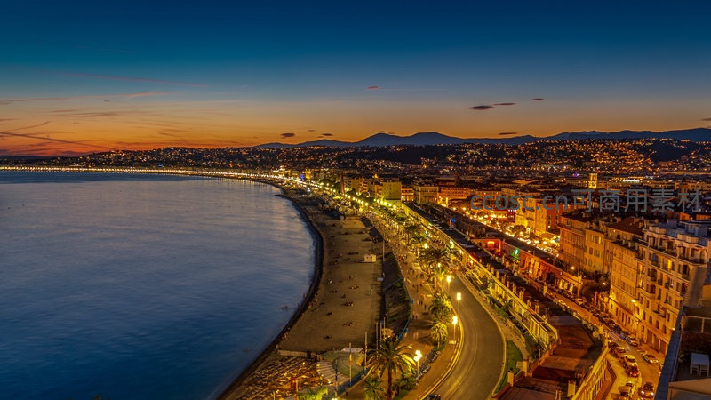 黄昏海岸线城市全景