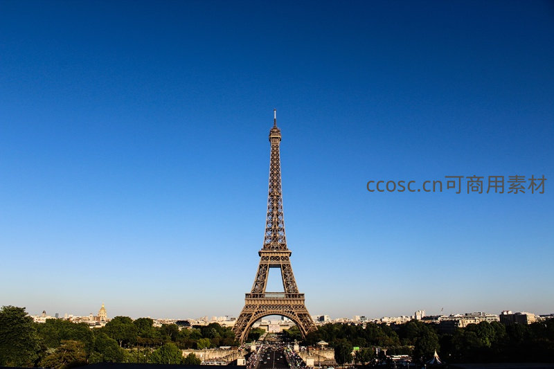 蓝天下的埃菲尔铁塔巍峨耸立