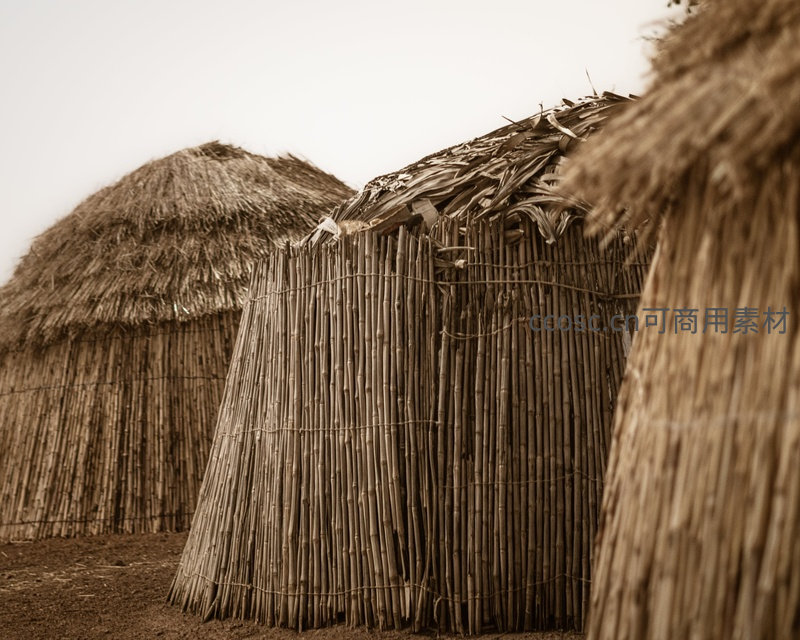 古朴茅草屋群落,竹木结构展现原始建筑智慧