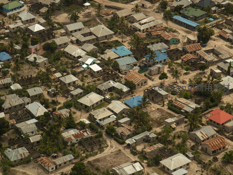 俯瞰村落:热带乡村的屋顶与绿意交织