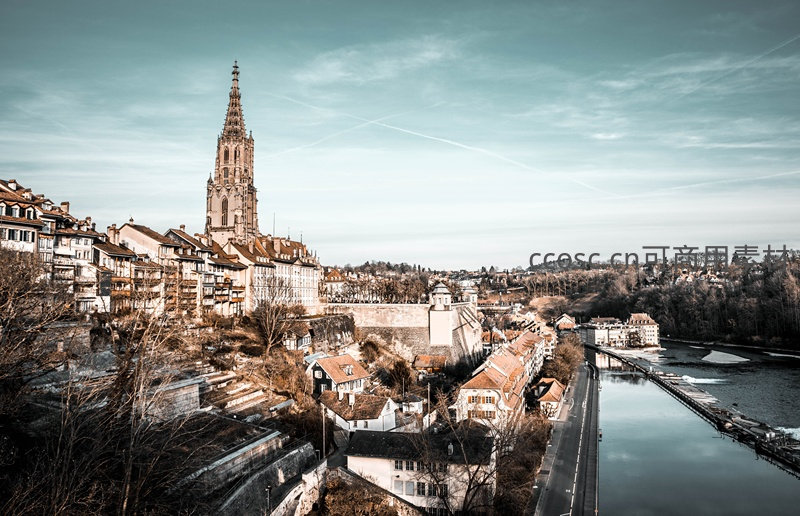 伯尔尼老城航拍:阿勒河畔哥特式尖塔与红瓦屋顶交织的千年古城风貌