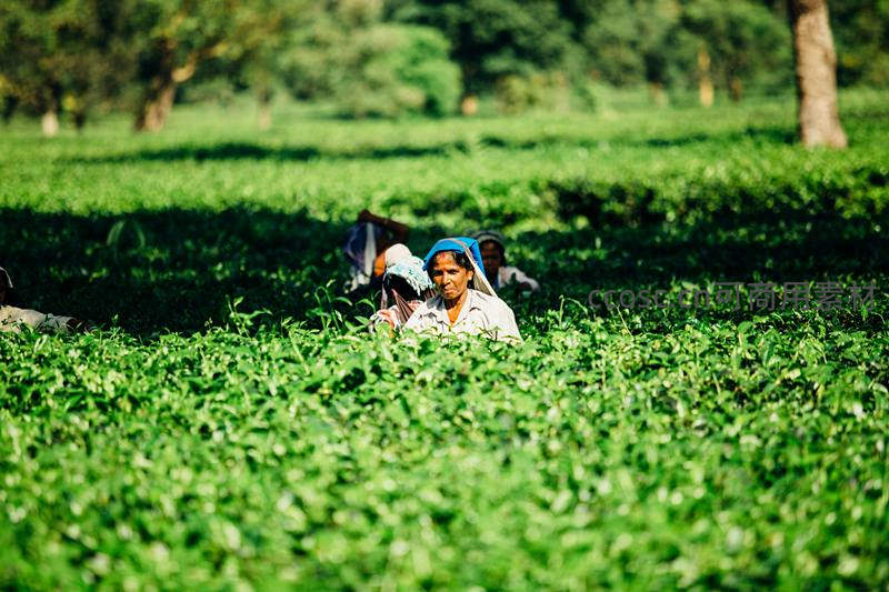 茶园中劳作的妇女,绿意盎然的茶垄间辛勤劳作身影