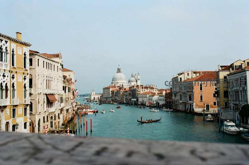 威尼斯大运河全景,圣玛丽亚健康教堂穹顶映衬水巷舟楫