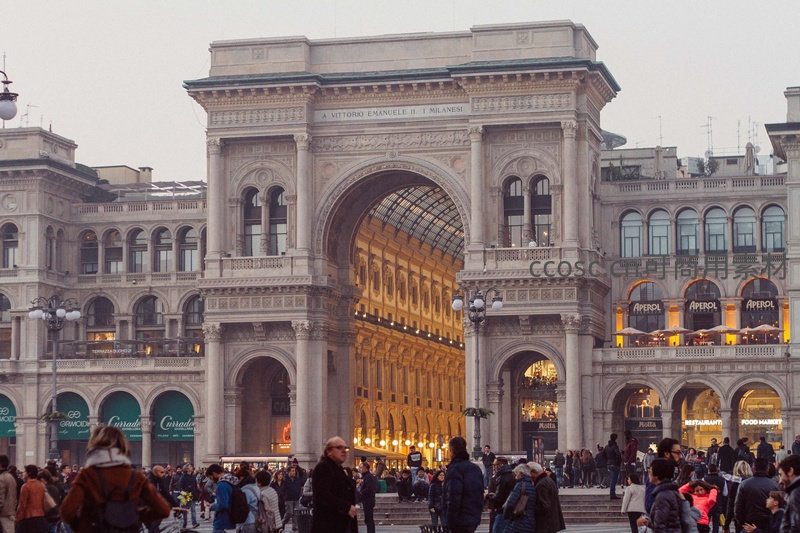 米兰大教堂广场前埃马努埃莱二世长廊入口全景