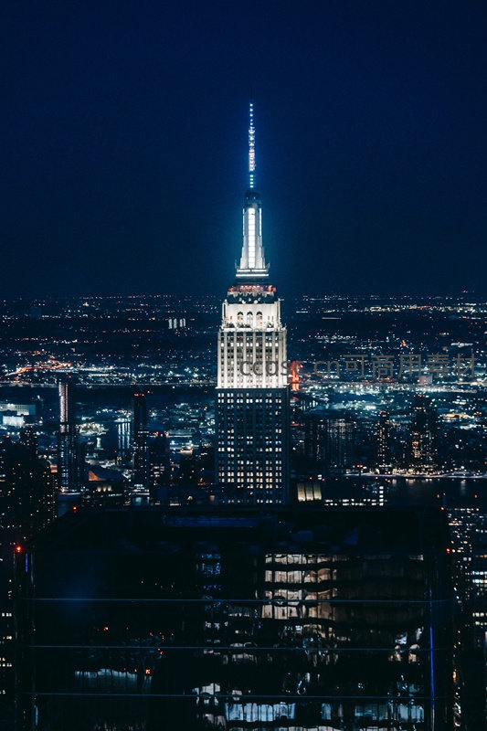夜幕下帝国大厦璀璨灯塔,俯瞰纽约都市星海