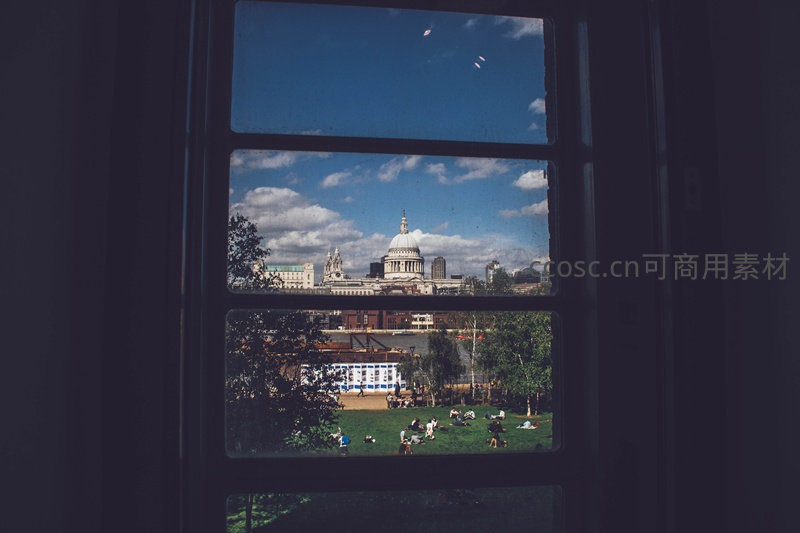 透过老窗框眺望圣保罗大教堂,公园人群休憩如画