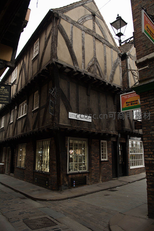 转角木筋楼雄踞街口,‘Little Shambles’标牌醒目,细节精致考究