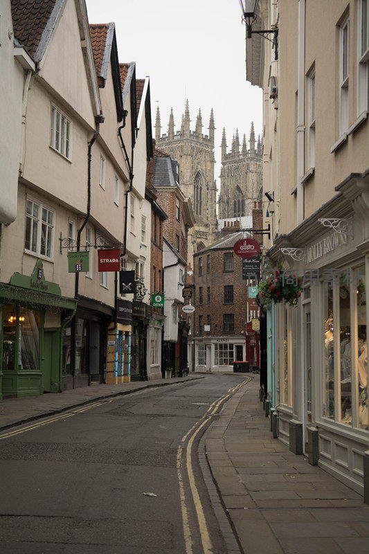 约克肉铺街远眺大教堂尖顶的狭窄巷道