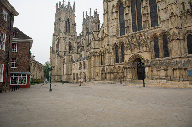 约克大教堂宏伟西立面矗立广场,哥特尖塔直指苍穹,空旷静谧