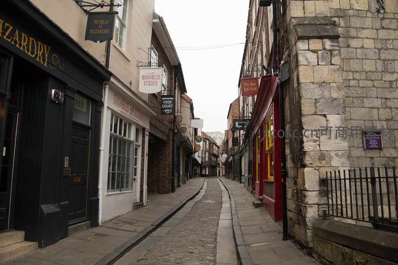 约克肉铺街石板路两旁复古店铺林立