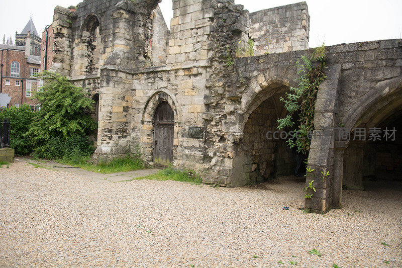 约克圣玛丽修道院残垣拱门与藤蔓共生