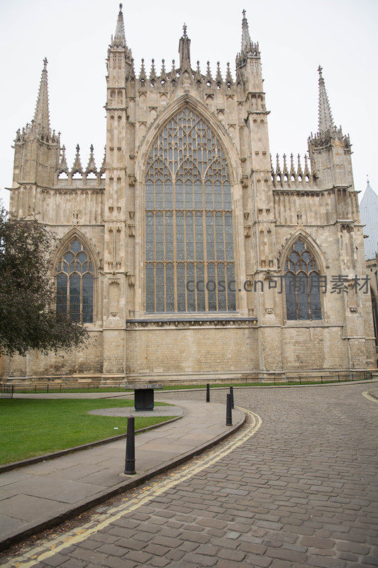 约克大教堂西立面哥特式尖塔与彩窗