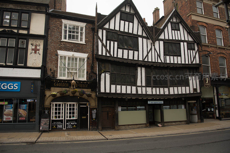 约克肉铺街传统木桁架建筑群,黑白相间风格独具英伦风情