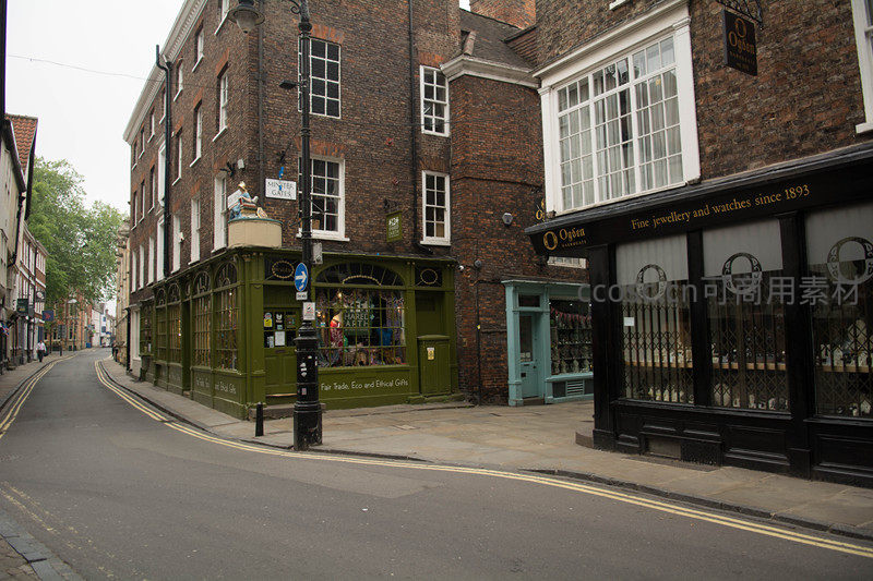 约克老城街角绿漆店铺与百年珠宝店并立