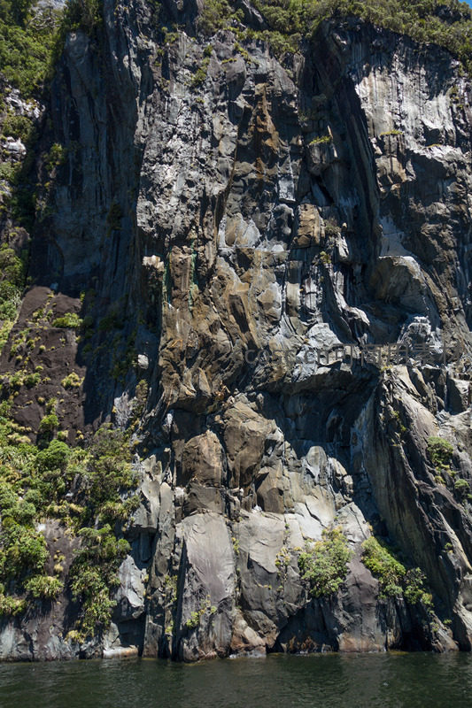 垂直岩壁纹理丰富,光影切割出立体层次的峡湾地质奇观
