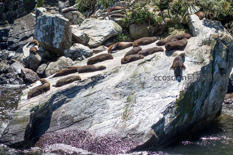 海狮群栖息于潮间带巨石,波光粼粼映衬生机