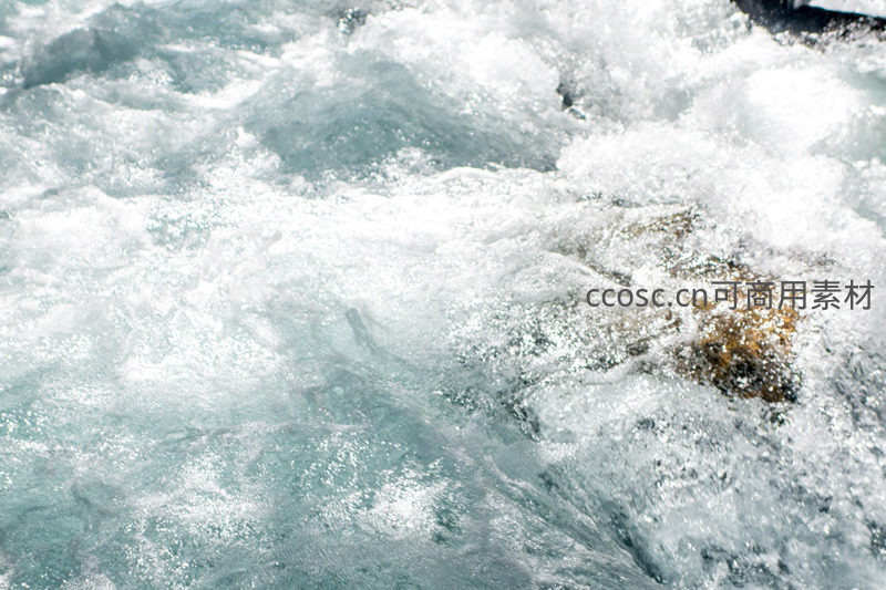 湍急溪流中岩石激起晶莹浪花与泡沫的动态瞬间