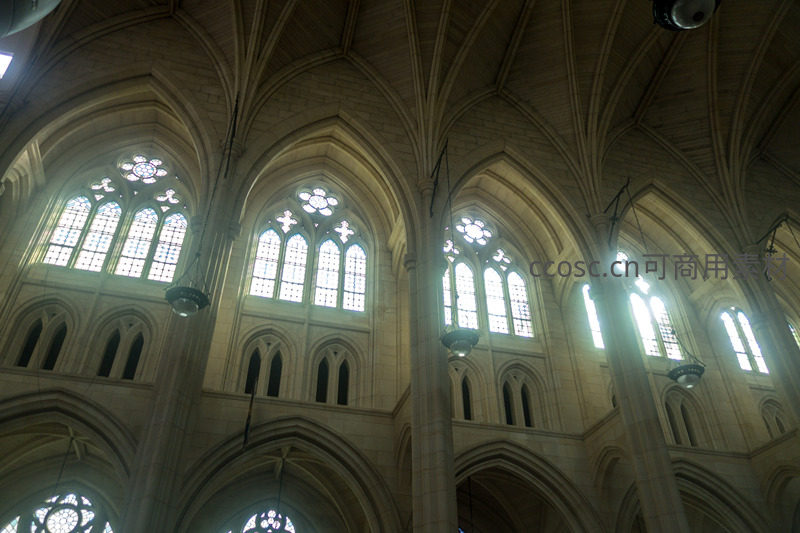 哥特式教堂穹顶与彩窗光影交织的神圣空间
