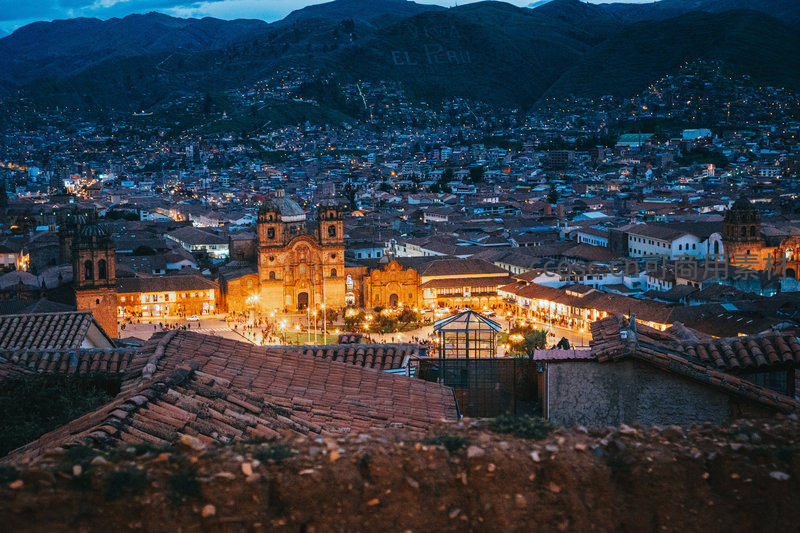 库斯科夜景航拍:圣多明各修道院与山城灯火交辉