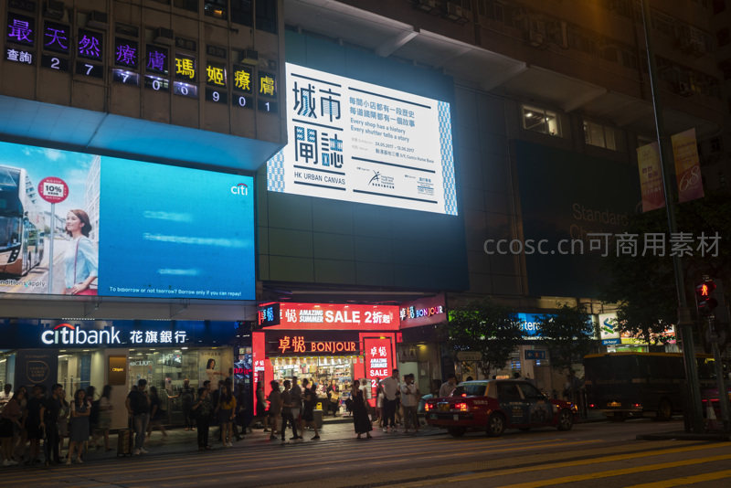 铜锣湾繁华商圈夜景,大型电子屏展示城市展览广告