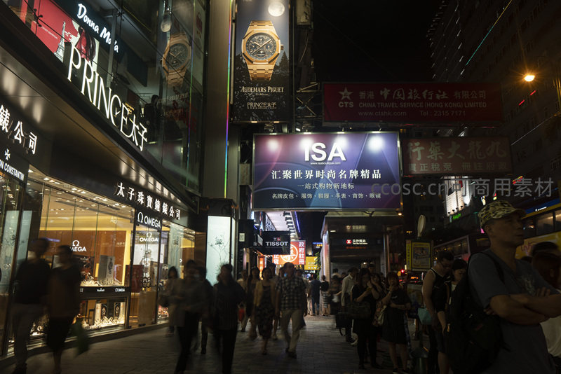 香港铜锣湾夜市繁华街景,霓虹灯牌林立人流如织