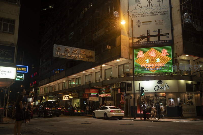 铜锣湾街角夜色,春鹿餐厅霓虹夺目,行人与车流交织成画