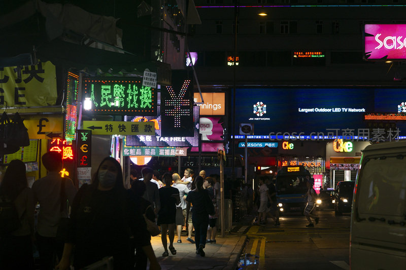 香港旺角夜市霓虹灯海人流如织繁华街景
