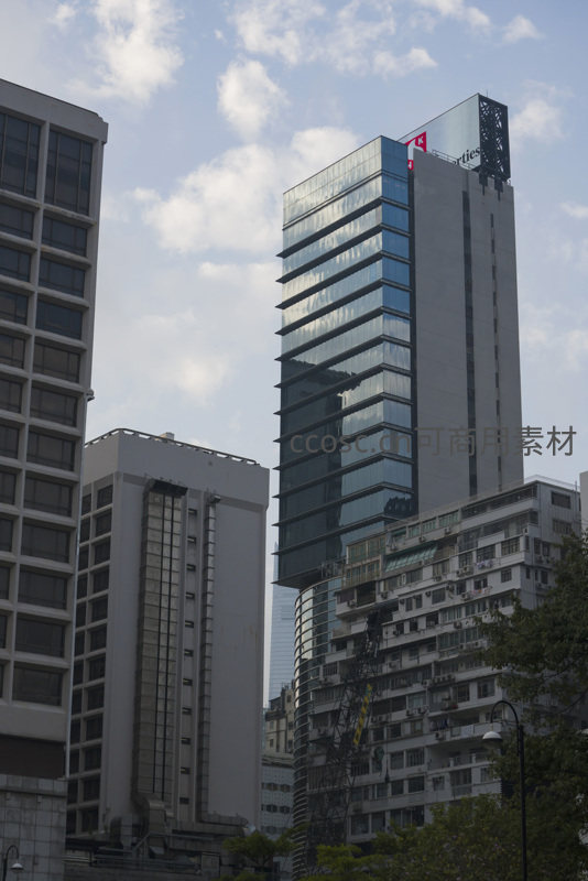 高耸玻璃幕墙大厦与老旧住宅楼并置,新旧城市肌理对比
