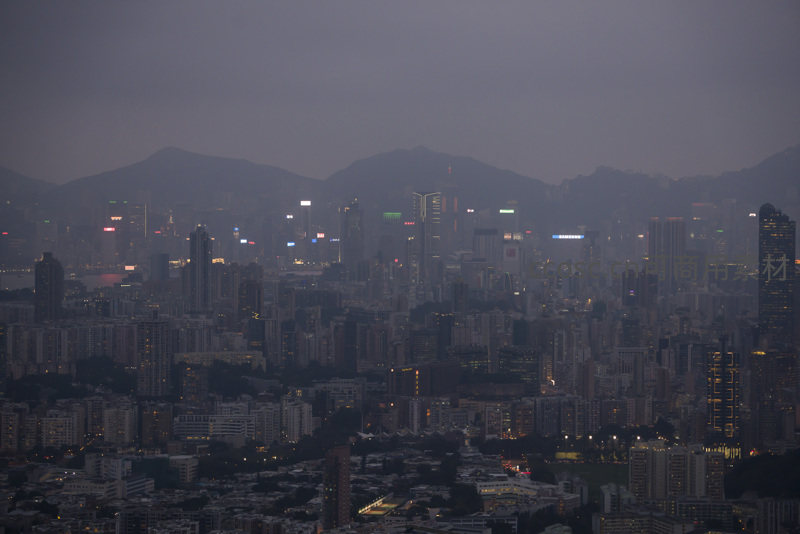 黄昏低光下的香港全景,万家灯火渐次点亮山海之间