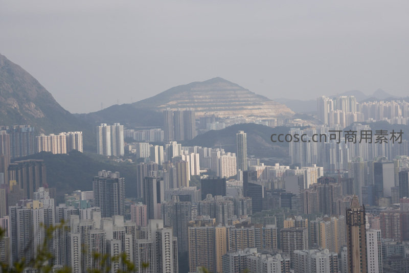狮子山与观塘工业区过渡带城市景观航拍