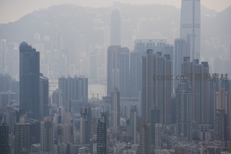 迷雾中的国际金融中心与中环天际线特写航拍