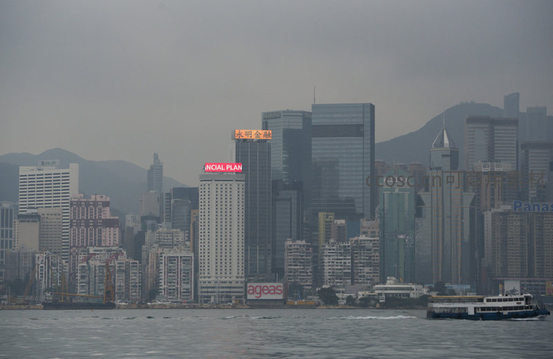 香港中环金融核心区雾中景象,永明金融与Panasonic广告醒目