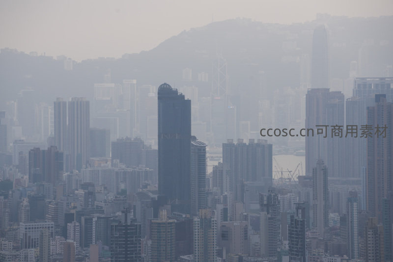远山近厦交织的港岛全景,雾气弥漫中彰显东方之珠的立体肌理