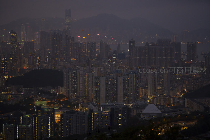 全景俯瞰港岛夜色,山城交融间万家灯火织就都市星河