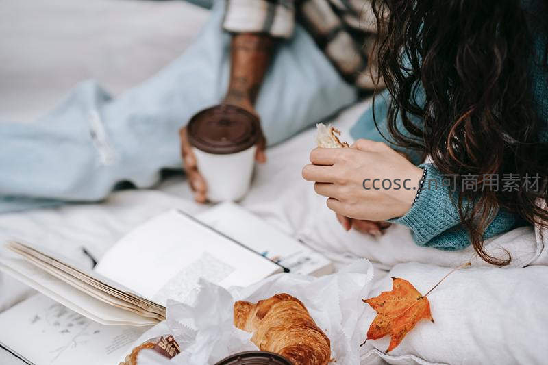 秋日床边早餐时光:咖啡、可颂与手写笔记的惬意瞬间