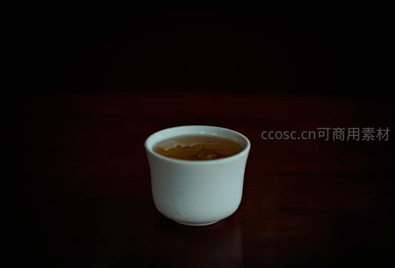 暗调光影中一杯温润茶汤,静谧雅致的中式茶道意境