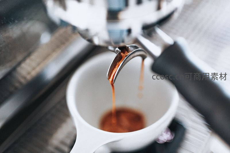 意式咖啡机萃取浓缩液特写微距镜头