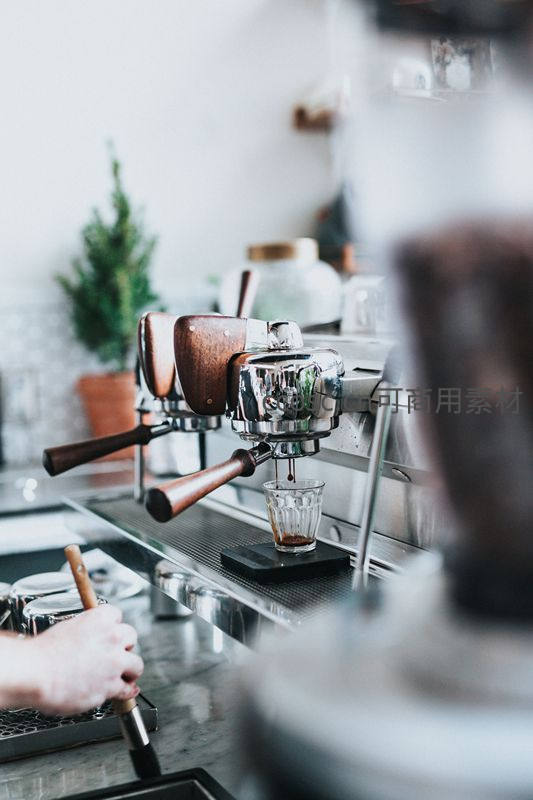专业咖啡师操作意式咖啡机萃取浓缩咖啡场景