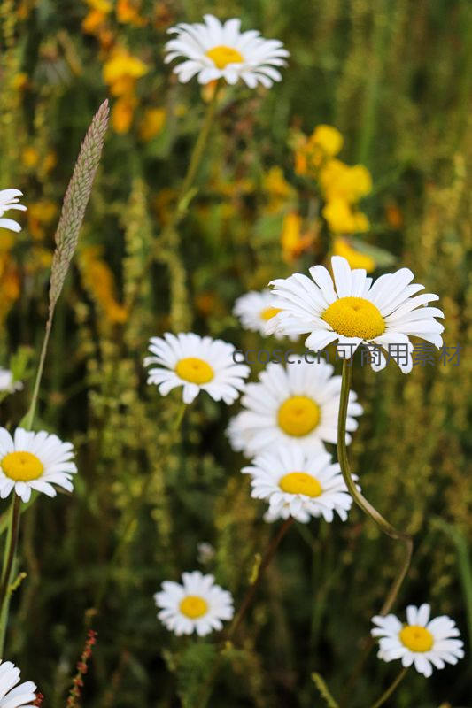 野地雏菊丛生,绿意盎然间点缀着纯白与明黄