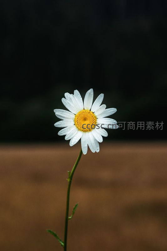 孤傲雏菊独立于旷野,暗色背景凸显其清雅高洁