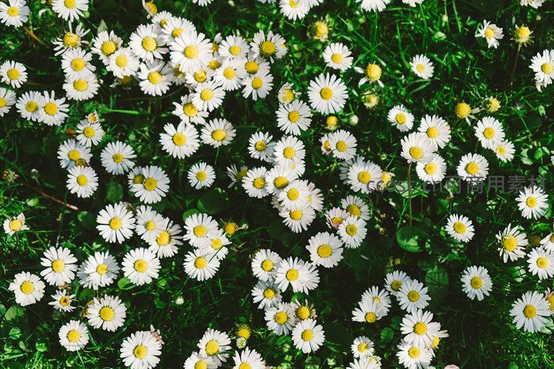 俯拍视角下的雏菊地毯般铺展