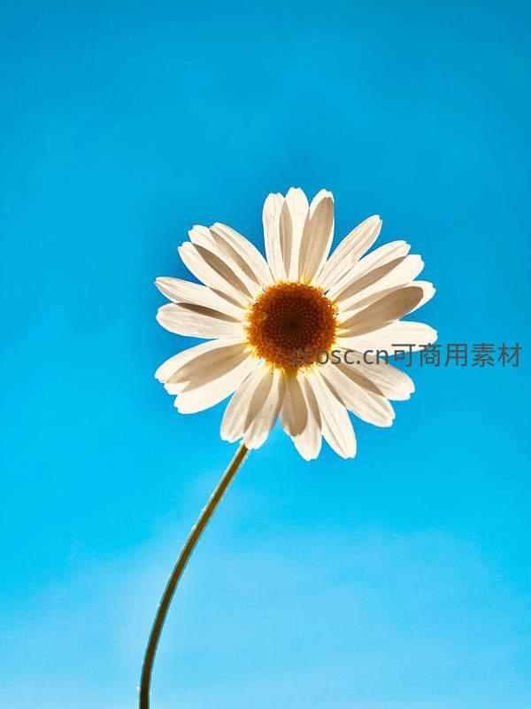 一根纤细的花茎托举着一朵盛开的雏菊,昂首向天,背景是纯净无瑕的蔚蓝天空,象征着简单、纯粹与无限希望。
