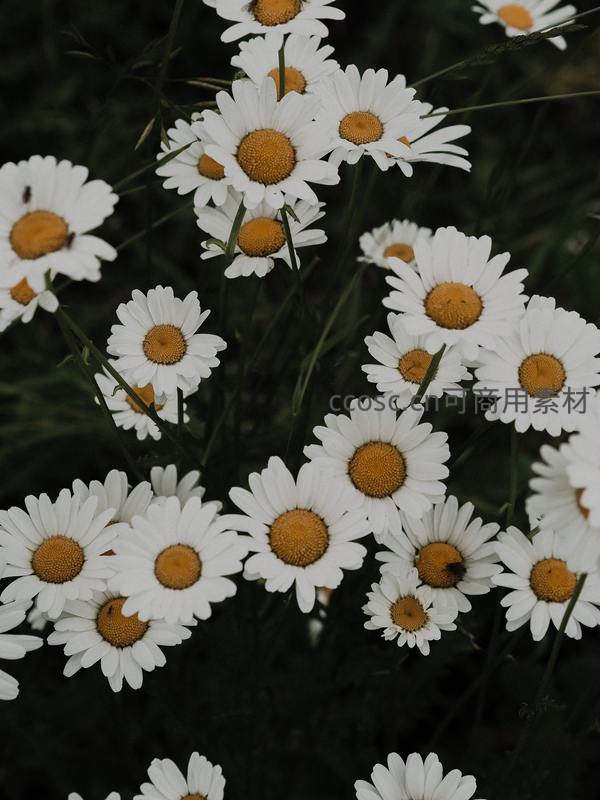 密集的雏菊在绿意盎然的环境中竞相绽放,花瓣层层叠叠,色彩对比鲜明,展现出自然野趣与旺盛的生命活力。