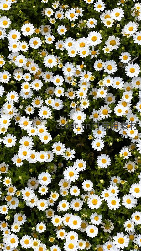 无数朵雏菊紧密相连,铺满整个画面,洁白的花瓣与金黄的花心形成视觉冲击,宛如一片无垠的花之海洋,令人心旷神怡。